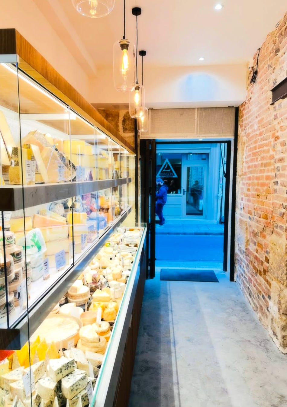 Inside, the display is a living map of French dairy genius. Chèvre? Fresh, cendré, saffron-rubbed, yuzu-swirled, even stuffed with fig or piment d’Espelette. Hard cheeses? A Comté cave-aged 36 months, Gruyère infused with sweet woodruff, and a pungent Beaufort. They’ve got the legends (Roquefort Vernières, Mont d’Or, mimolette extra-vieille, Brillat-Savarin) and seasonal collabs too: brie with glazed chestnuts and buckwheat, Saint-Marcellin with wild garlic, Saint-Nectaire dusted with Sansho pepper.