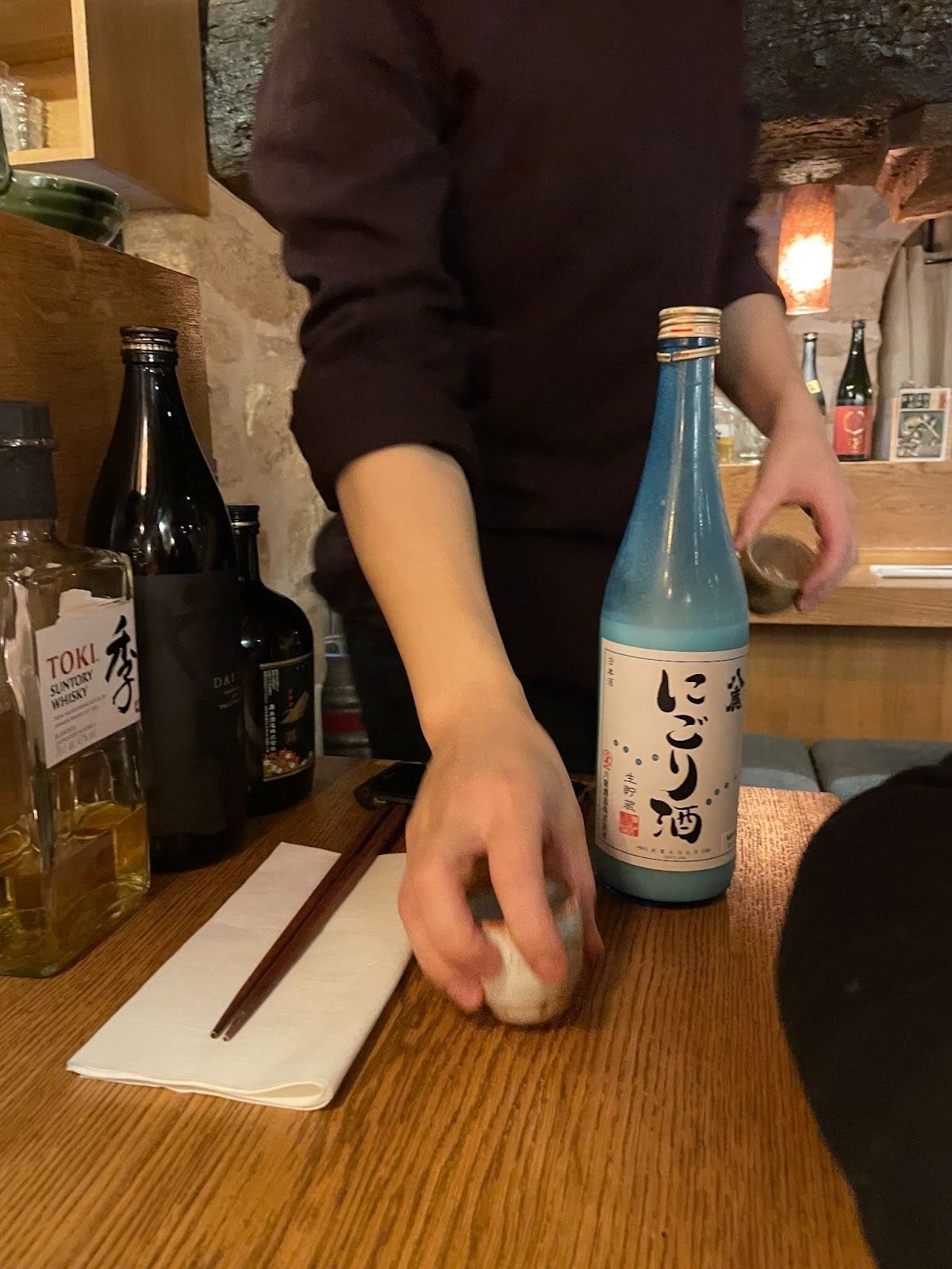There’s an Alice in Wonderland quality to Muku, a newly opened izakaya in the 6th arrondissement. Through a tiny door, a few steps down, and suddenly you’re inside an entirely different world where time seems to slow and attention shifts to the essentials: food, drink, and serenity.