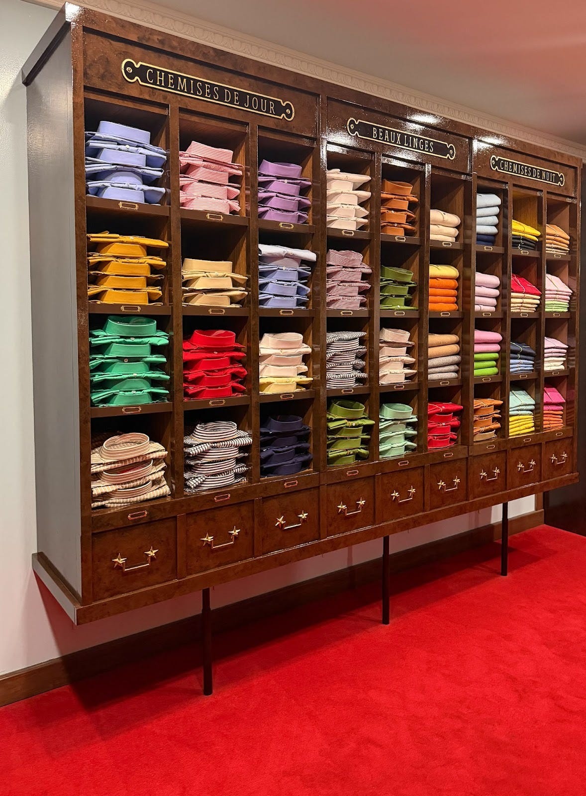 The new measure of fine shirting can be found at Rubirosas, in the 7th. It’s the newest venture from jewelry designer Lauren Rubinski, who draws directly on her family history supplying poplin for Vatican clergy. The petite storefront opens into a delightful interior, framed by colorful crisp shirts, finely knit cashmere, tailored sleepwear, and leather slippers. The curated selection is carefully tucked into restored shelving, with shirts starting at around 300 €.